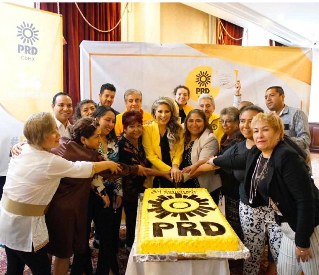 La presidenta del PRD en la Ciudad de México, Nora Arias Contreras, junto a presidentes de los comités y concejales, conmemoraron este viernes los 34 años de lucha democrática impulsada por el Sol Azteca desde la capital hacia el todo el país.
