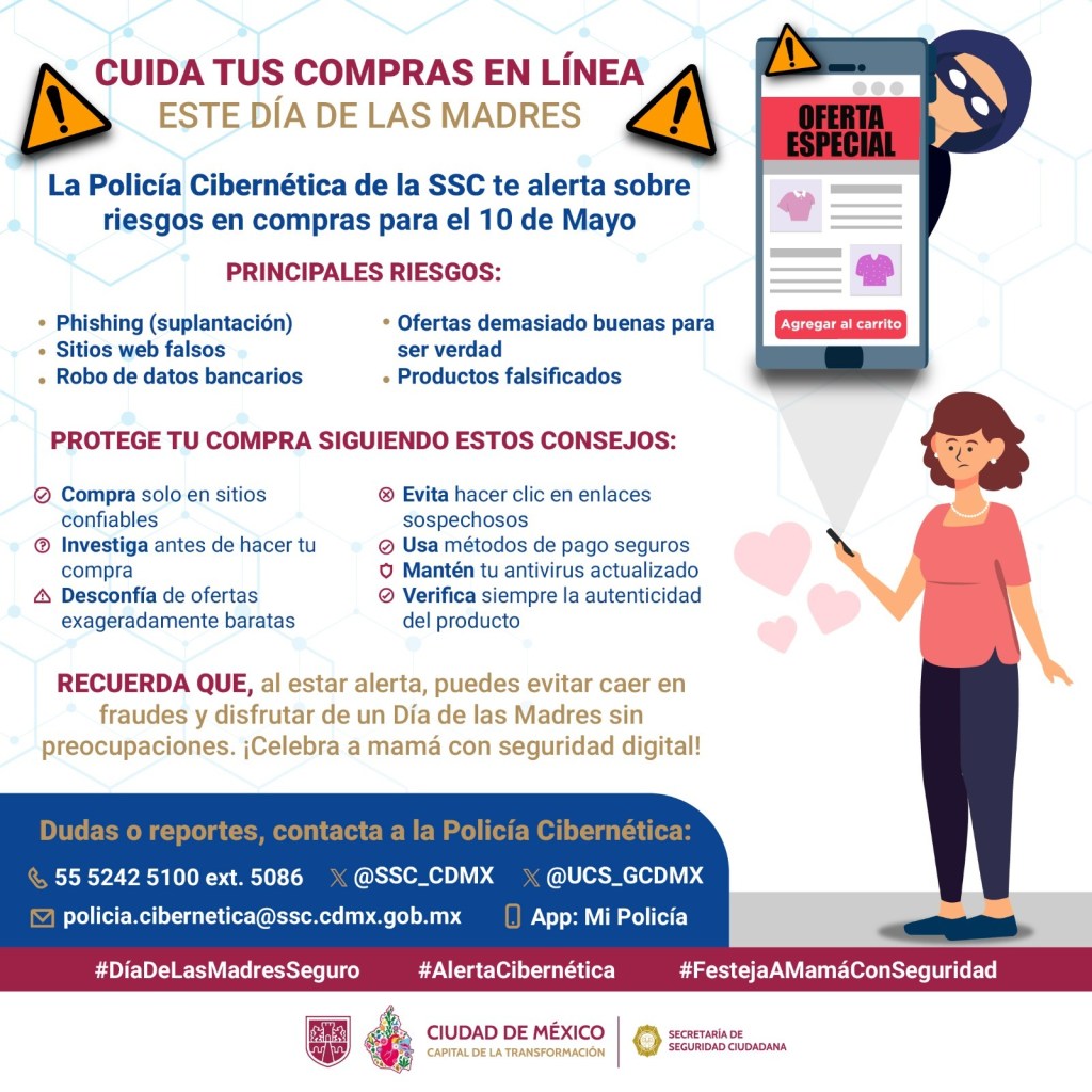 La Unidad de la Policía Cibernética de la Secretaría de Seguridad Ciudadana (SSC) capitalina, alertó sobre los posibles fraudes en compras y ventas en línea por los festejos del 10 de Mayo.